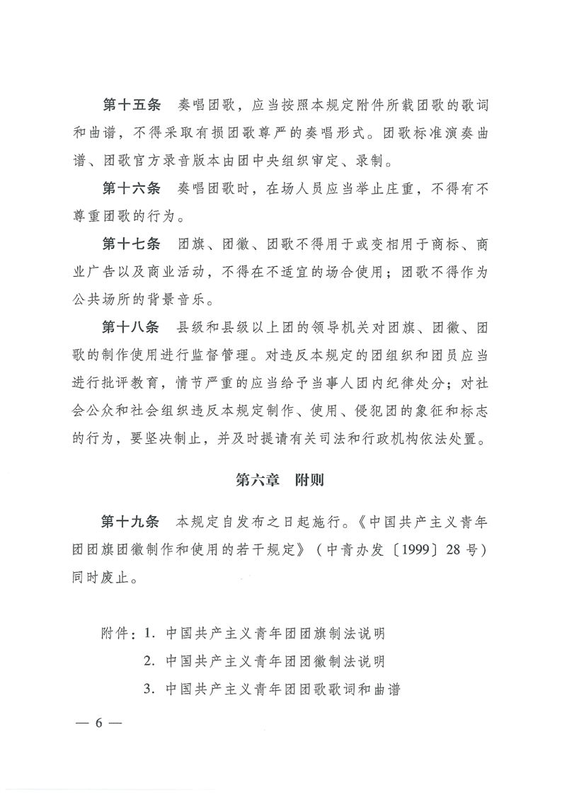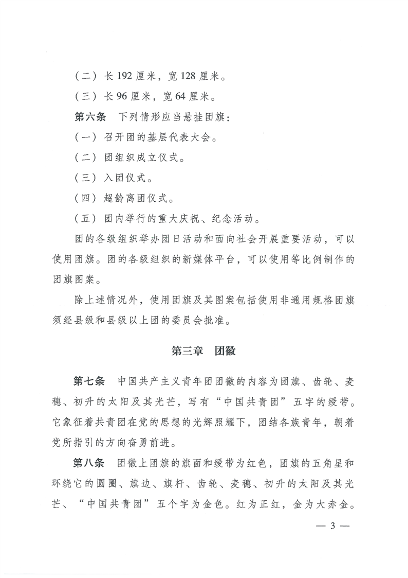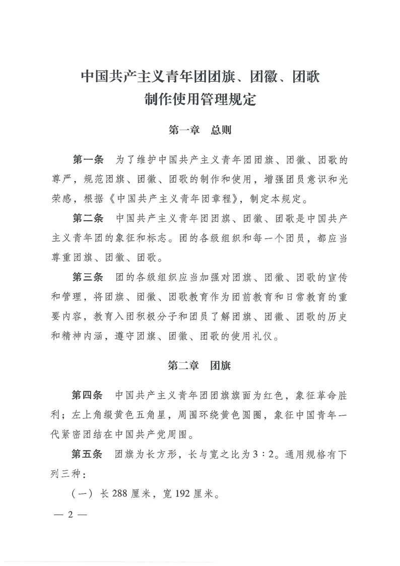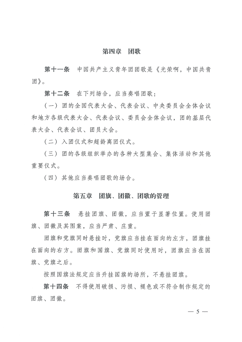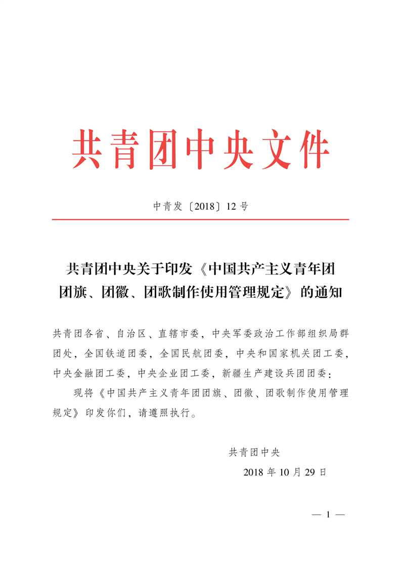 共青团中央关于印发《中国共产主义青年团 团旗、团徽、团歌制作使用管理规定》的通知