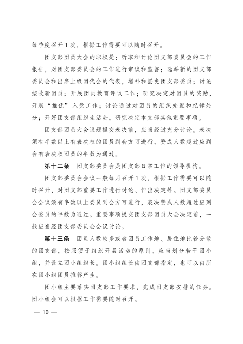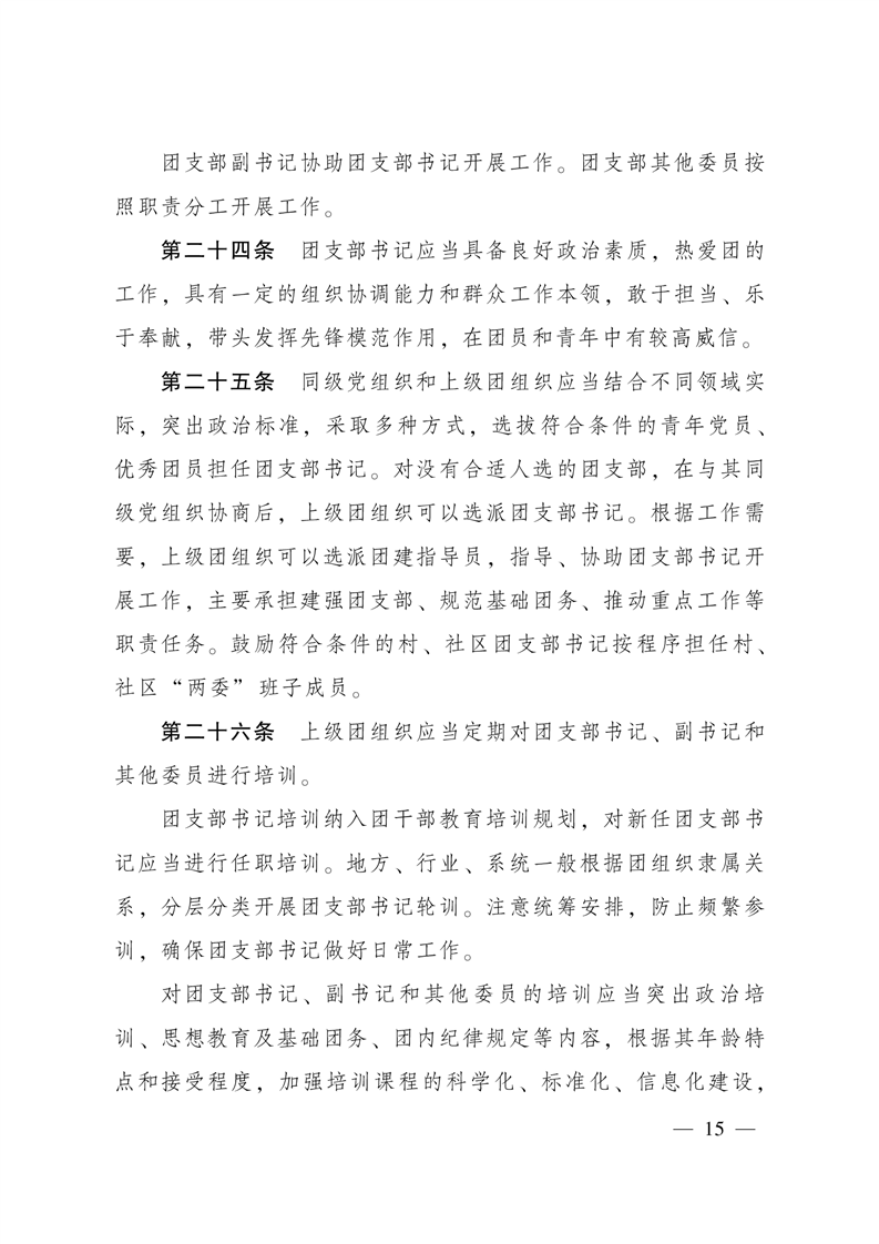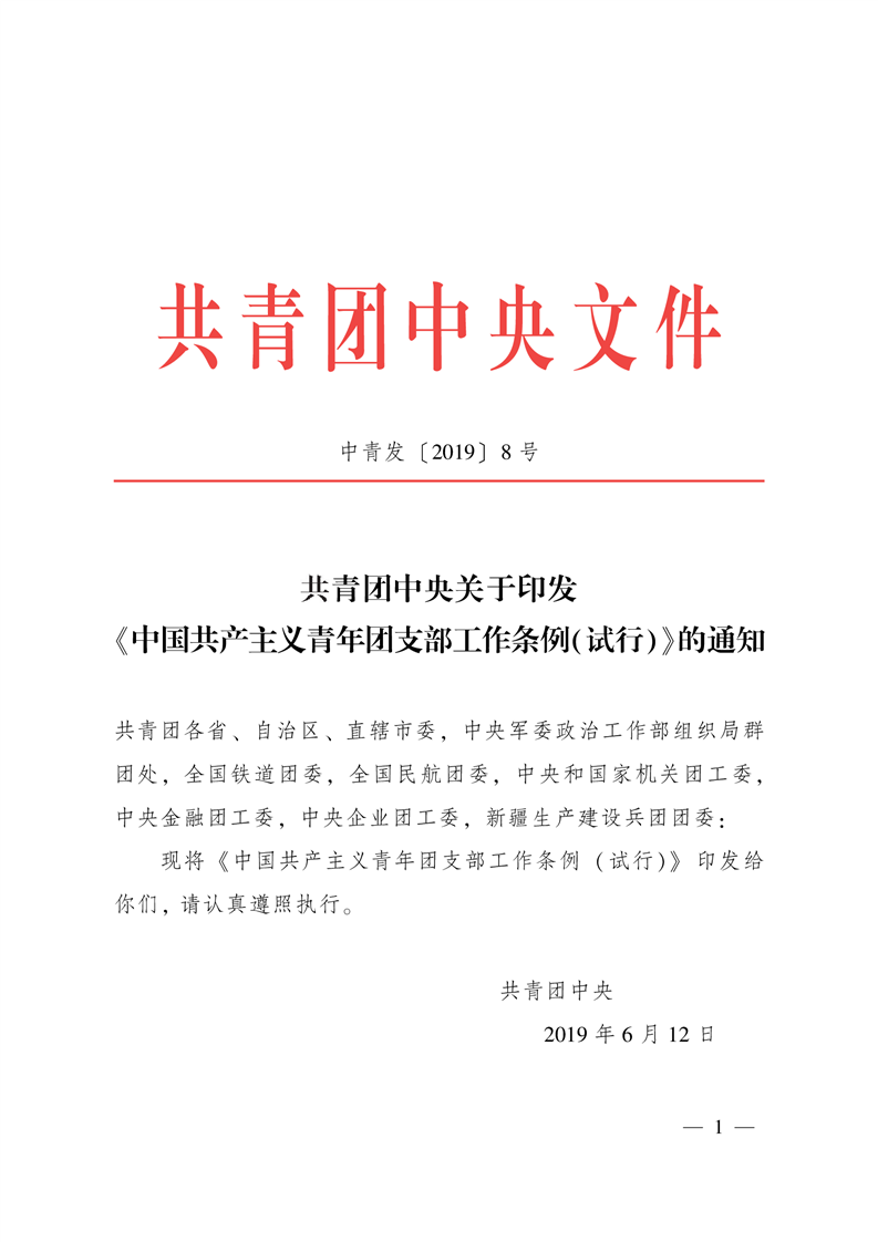 共青团中央关于印发《中国共产主义青年团支部工作条例(试行)》的通知