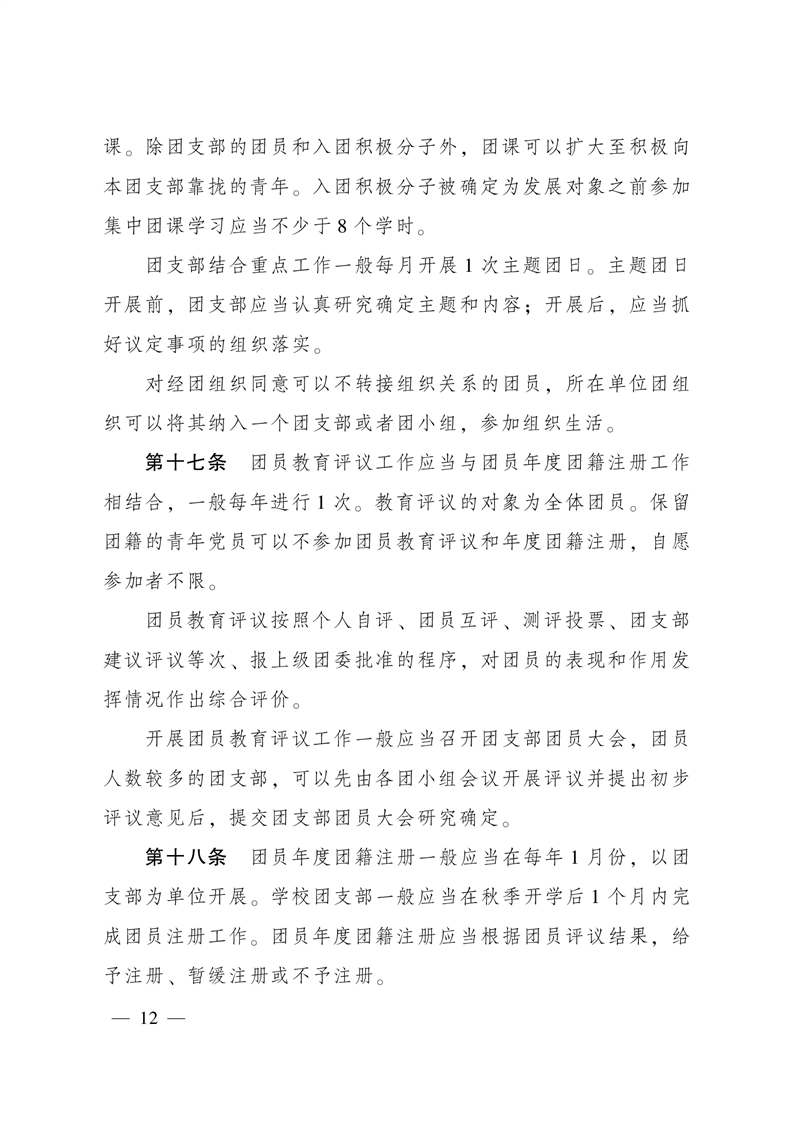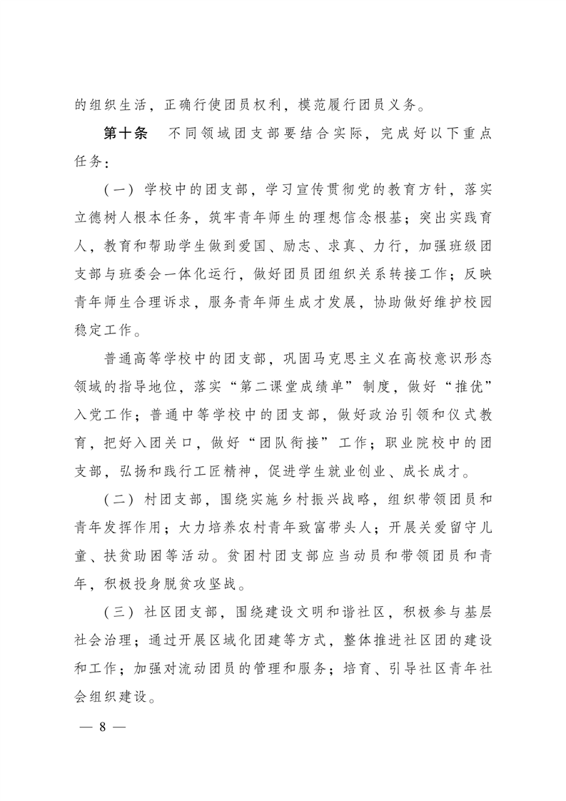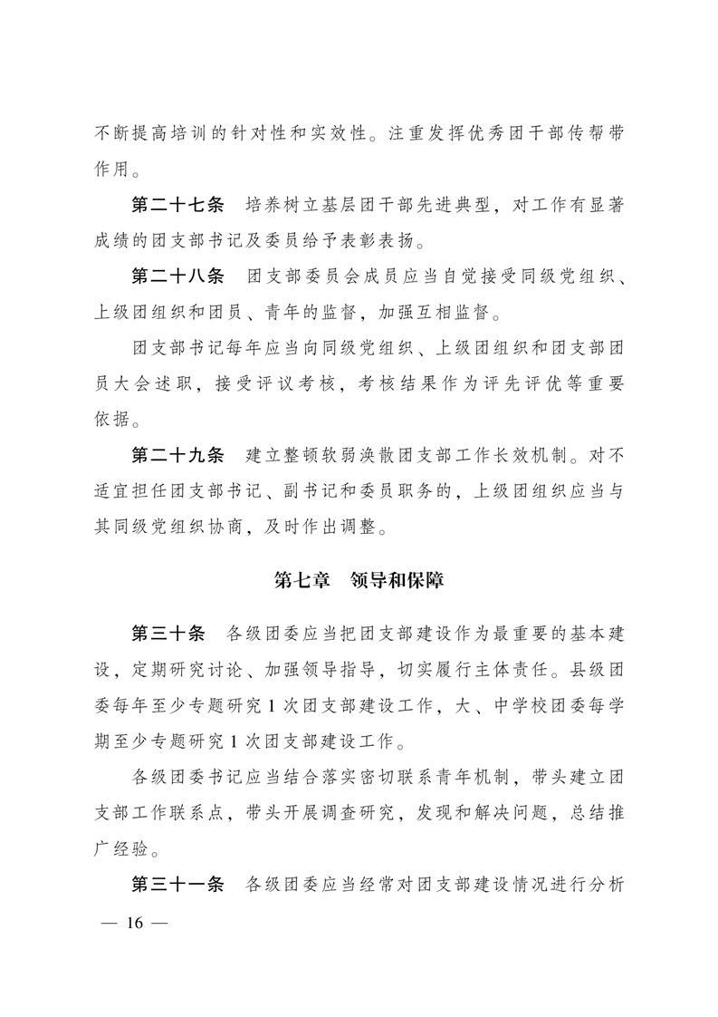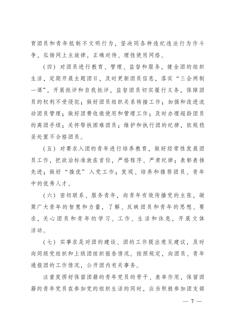 共青团中央关于印发《中国共产主义青年团支部工作条例(试行)》的通知