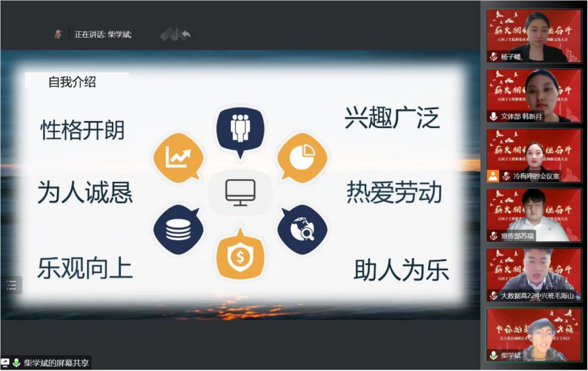 10月31日晚上20时,学院学生会通过云会议的方式举行了2022年学生会纳新竞选大会。学院团委书记杨子嶓老师、院学生会全体老成员及竞选的新成员参加此次大会,会议由文体部副部长韩新月主持。