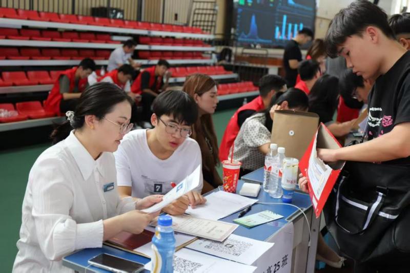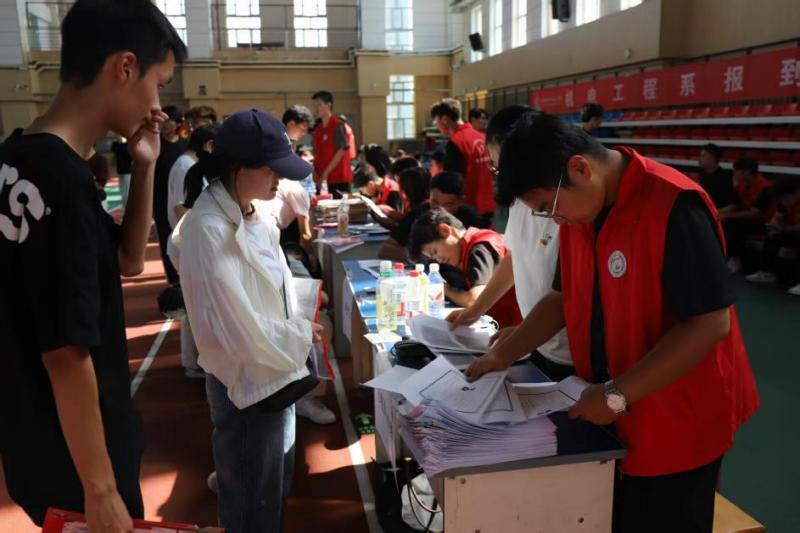 为保障迎新工作高效顺畅,机电工程系师生提前谋划、周密部署。辅导员老师以饱满热情,耐心解答新生关于专业学习、校园生活的各类疑问;学生会各部门通力协作、分工明确,从流程梳理到现场调度,全力保障迎新环节有序推进;志愿者们身着统一服装提前就位,主动帮新生提拿行李、指引路线,用热情与贴心的服务,化解新生初来乍到的陌生感。学院更特别为新生提供注册登记、住宿安排等“一站式”服务,让前来报到的学生及家长省时又省心。