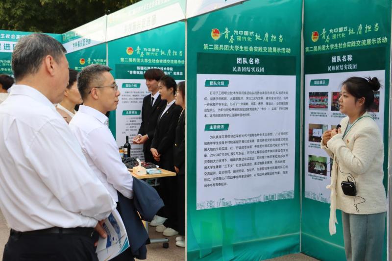 9月26日—27日,第二届兵团大学生社会实践交流展示暨青春思政汇报会在石河子大学北区如期举行,石河子工程职业技术学院民族团结实践团作为2025年暑期“三下乡”社会实践优秀团队出席此次活动。