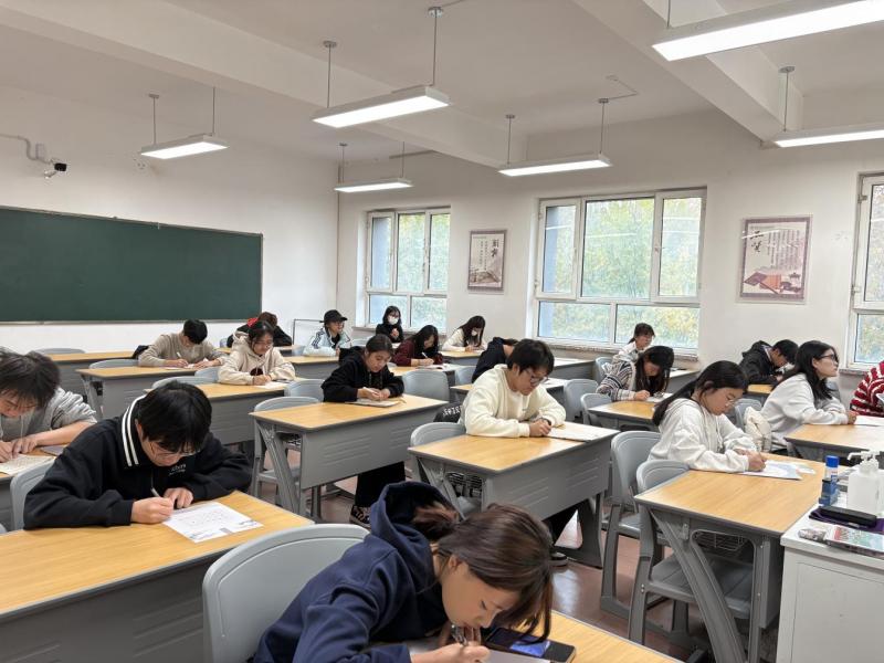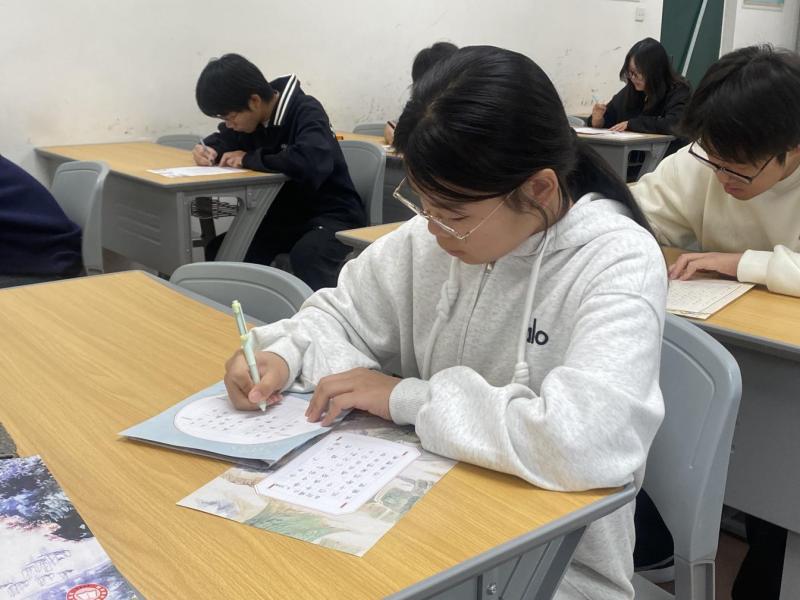 比赛现场气氛庄重而热烈,参赛选手们齐聚一堂,全神贯注,沉浸于书法世界。空气中弥漫着淡淡的墨香,耳边只有笔尖与纸张摩擦的“沙沙”声,宛如一首宁静的协奏曲。同学们个个坐姿端正,神情专注,或凝神构思,或奋笔疾书。他们笔下所书,既有古典诗词的隽永深邃,也有励志名言的激昂慷慨,充分展现了食品化工系学子在专业技能之外,对传统文化艺术的追求与热爱。