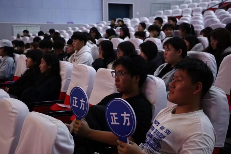 提问环节氛围格外热烈,在场学生纷纷举手互动,抛出的问题紧紧围绕 “目标可行性与选择” 辩题,既有该优先选择“能做好的简单项”还是“有挑战的目标项” 这类贴近校园生活的困惑,也有对 “感情困境中如何面对” 的深度追问。辩手们认真回应,带动了观众席的小声共鸣,让思辨从赛场延伸到台下,互动感拉满。