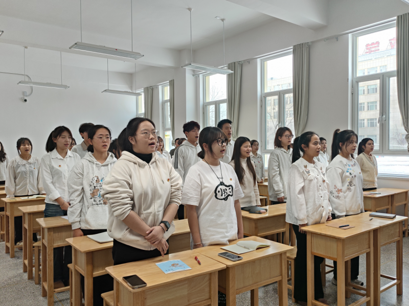 活动尾声,全体团员面向团旗,举起右拳,重温入团誓词。“我志愿加入中国共产主义青年团……”庄严的誓言响彻现场,既是对共青团员责任担当的再次确认,也是对铸牢中华民族共同体意识的郑重承诺。随后大家齐唱《中国共产主义青年团团歌》,激昂的旋律进一步凝聚了青春力量,强化了团员意识与组织归属感。