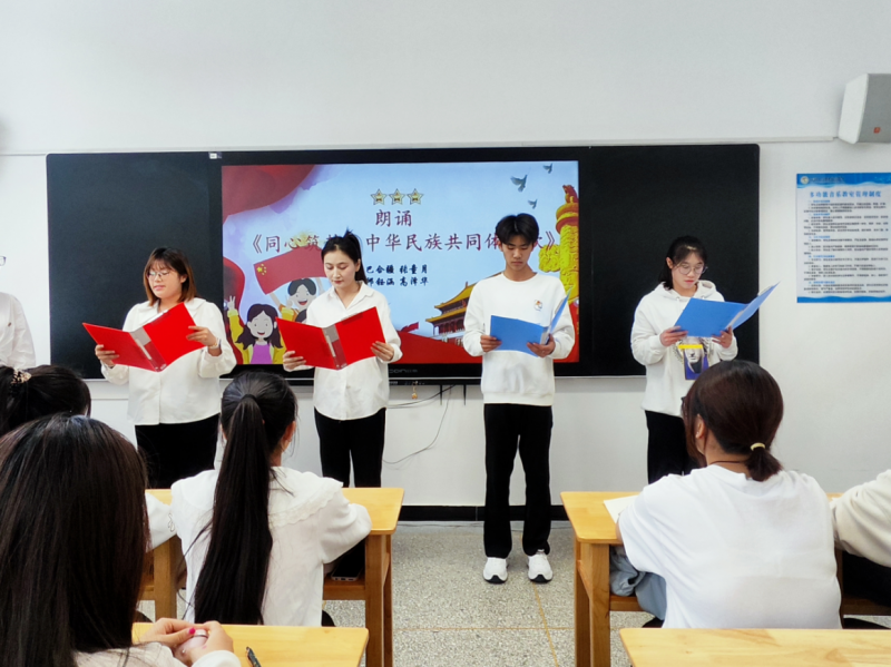 为增强活动的感染力,活动精心安排了诗歌朗诵环节。团员代表深情朗诵了《同心筑梦》一文,用声音的艺术展现了中华民族团结奋进、共创辉煌的精神风貌,表达了各族儿女手足相亲、守望相助的深厚情感,引发了在场同学的强烈共鸣。在感悟分享环节,团员们踊跃发言,结合自身成长经历与学习感悟,畅谈对民族团结的理解。