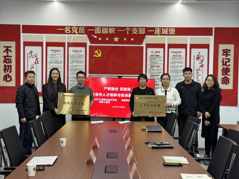 12月8日,石河子工程职业技术学院信息工程系与新疆西睿智能网络科技有限公司在该校举行“产教融合,实践育人”校企合作人才培养与实训基地挂牌仪式。双方就深化产教融合、协同育人机制进行了深入交流,并正式互授“校外实训基地”与“人才培养基地”牌匾,标志着校企合作步入实质性推进阶段。信息工程系副主任支琛琛、胡金荣,新疆西睿智能网络科技有限公司分公司负责人翟钐钐、人事经理胡雪羚等共同出席仪式。
