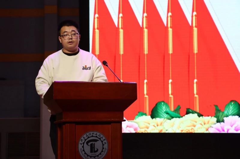 随后、新当选的第四届学生委员会委员代表王鹏飞和石河子工程职业技术学院第四届主席团成员代表郭思雨分别作表态发言。