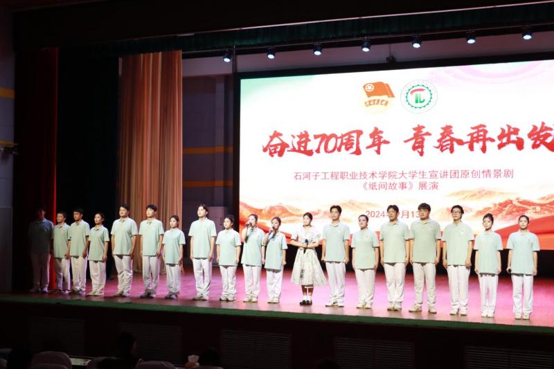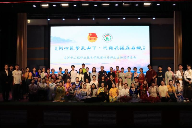大学生宣讲团于2022年3月成立,自成立以来,宣讲团师生共同编排创作原创情景剧《跨越时空的对话》《纸间故事》《同心筑梦天山下同频共振在石城》和话剧《可可托海的守矿人》。两年多来,宣讲团坚持用自己的声音传承红色基因、传递青年力量,用“同学、同行、同讲、同育”的崭新模式,先后开展宣讲活动30余场,观演者万余人次。2023年8月,第二届大学生宣讲团赴江西省全国青少年井冈山革命传统教育基地参加“井冈情·中国梦”全国大学生暑期社会实践专项活动;2024年8月、2025年7月,第三、四届大学生宣讲团赴喀什地区疏附县布拉克苏乡开展暑期“三下乡”社会实践活动。