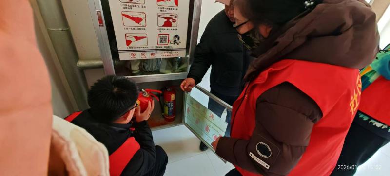 寒假期间,正值冬季用电高峰期,社区消防安全压力倍增。王鹏飞同学主动请缨,跟随社区工作者深入辖区开展消防安全检查。顶着寒风,他逐一检查楼道灭火器压力值,仔细排查电动车飞线充电、老旧线路老化等隐患。在一次排查中,他发现某栋楼有电动车飞线充电,立即协助社区联系住户清理。实践期间,他累计参与排查东城社区所属小区的社区消防安全,发现并协助整改消防安全隐患,用细致入微的守护换来了社区的平安祥和。