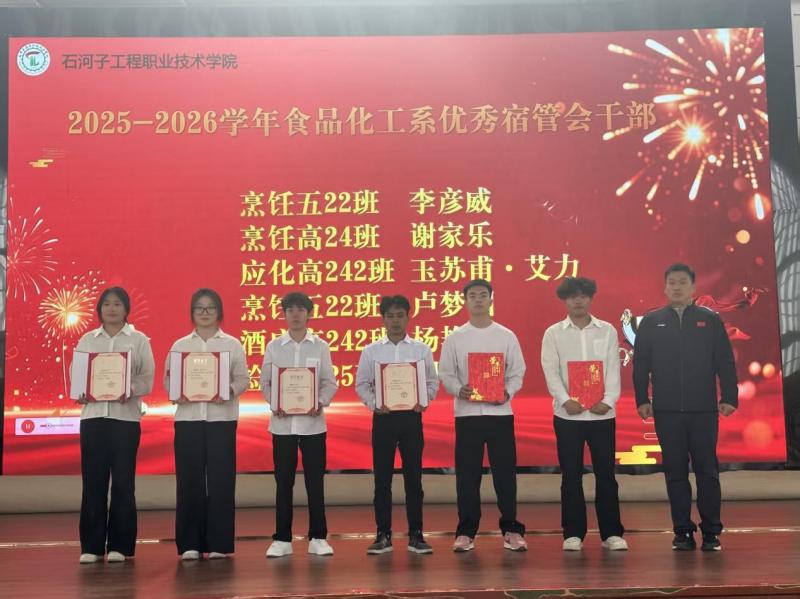 评优评先环节中,教学管理副主任曾蓉宣读了获得省级及以上荣誉的学生名单;学生管理副主任王战宣读了获得校级荣誉的学生名单;团总支书记石扬宣读了获得系级荣誉的学生名单。获奖学生及代表在热烈的掌声中依次上台领奖,食品化工系教师为他们颁发荣誉证书,并合影留念。一张张证书见证了学子们的努力与成长,也激励着在场每一位同学见贤思齐、奋勇争先。