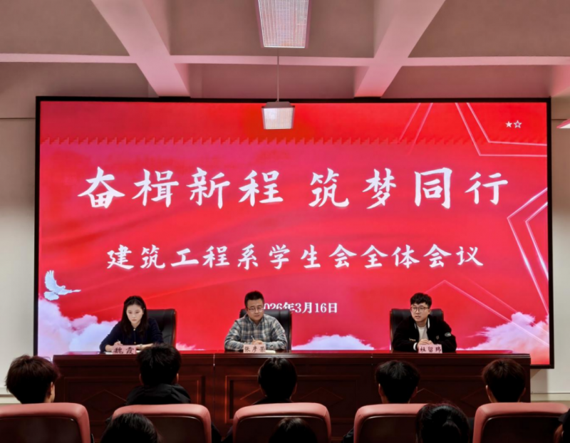 此次全体大会的召开,进一步凝聚了学生会全体成员的思想共识,明确了新学期的工作方向与奋斗目标,为全系学生工作的有序开展奠定了坚实基础。大会不仅为建筑工程系学生会全体成员注入了奋进动力,更引导大家进一步树立责任意识与担当精神。新学期新起点,建筑工程系学生会全体成员将以全新的气象、昂扬的姿态,坚守初心使命,锤炼过硬本领,团结带领全系学子脚踏实地、奋勇争先,将个人成长与系部发展深度融合,以实干诠释青春担当,用行动传递青春正能量,携手并肩、凝心聚力,共同谱写建筑工程系高质量发展的崭新篇章!